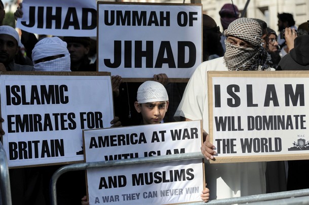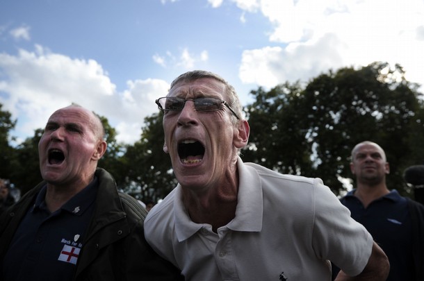 It obviously hasn’t occurred to either the members of the English Defence League or the Islamic extremists who attended today’s 9/11 memorial service in London to shout at one another, that the higher ground might have been a better place to occupy.