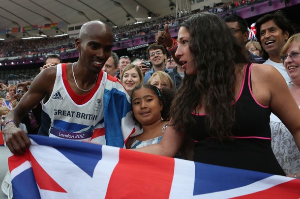 And finally, this post would not be complete without a hat tip to Tania Farah, who not only managed to cope with the excitement of her husband winning gold medals in the 5000m and 10,000m races while pregnant with twins, but kept their excitable daughter happy during the boring bits and found room in her handbag for a renegade flag without smacking anyone (particularly Mo) in the gob.