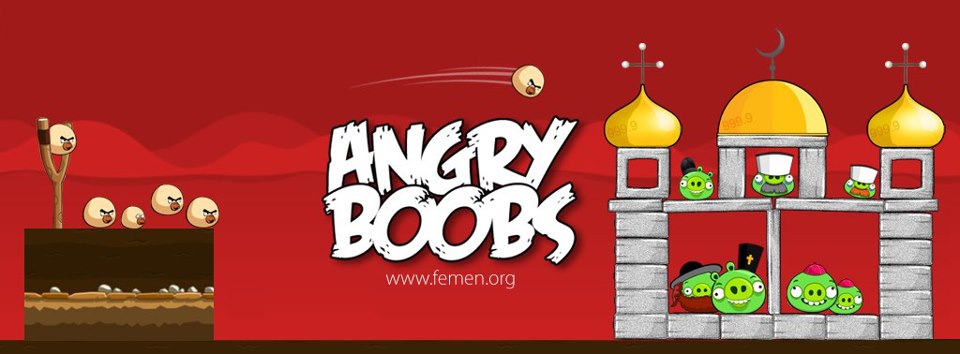 I played Angry Birds yesterday. Which makes this FEMEN update even more fantabulous, and more importantly, given the subject matter today, re-le-vant. Image via facebook.