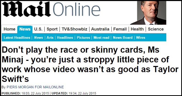 Embed from Getty ImagesMy issue is rather more the fact that, as the author of ten books and former editor of two national newspapers, Morgan has typed out his latest missive for the Daily Bastard Mail, sat back in his ergonomic office chair and read it back, without noticing that Nicki Minaj dissing him backstage is not a viable entry point into this debate or reason to pass judgement on the relative merits of each argument.