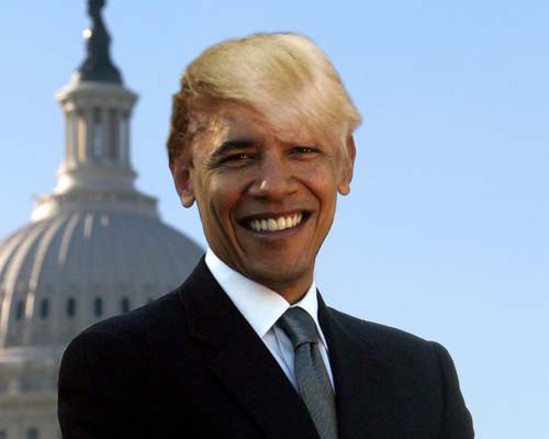 Trumpbama: Because science has proved that anyone with this hair must be a fool or an idiot. Or both. (Photoshop by KW)